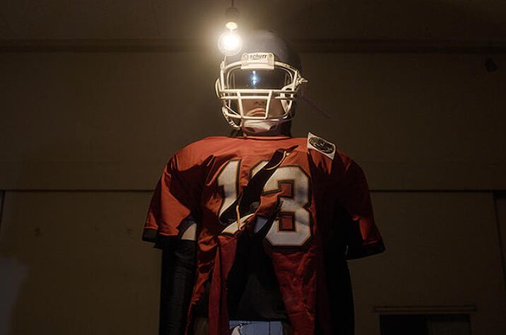自らアメフト選手に